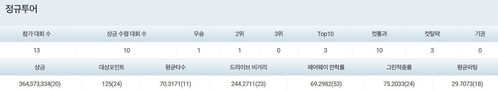 2024년 시즌은 여전히 쉽지 않았습니다. 출전한 대회의 절반가량에서만 컷 통과에 성공했고, 여전히 톱10이라는 벽은 높기만 했습니다. 시즌 종료 시 상금 순위는 89위까지 하락하며 다시 예선부터 시드순위전을 치르게 되었고, 본선에서는 42위를 기록하며 2025 시즌 정규투어 풀시드 확보에는 실패하게 됩니다.