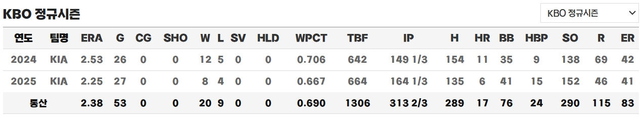 2025: 이닝 164 1/3 / 10위