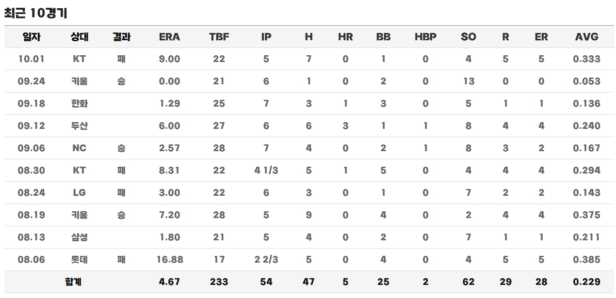 ◇ 최근 KBO 경기 성적 / 기록
