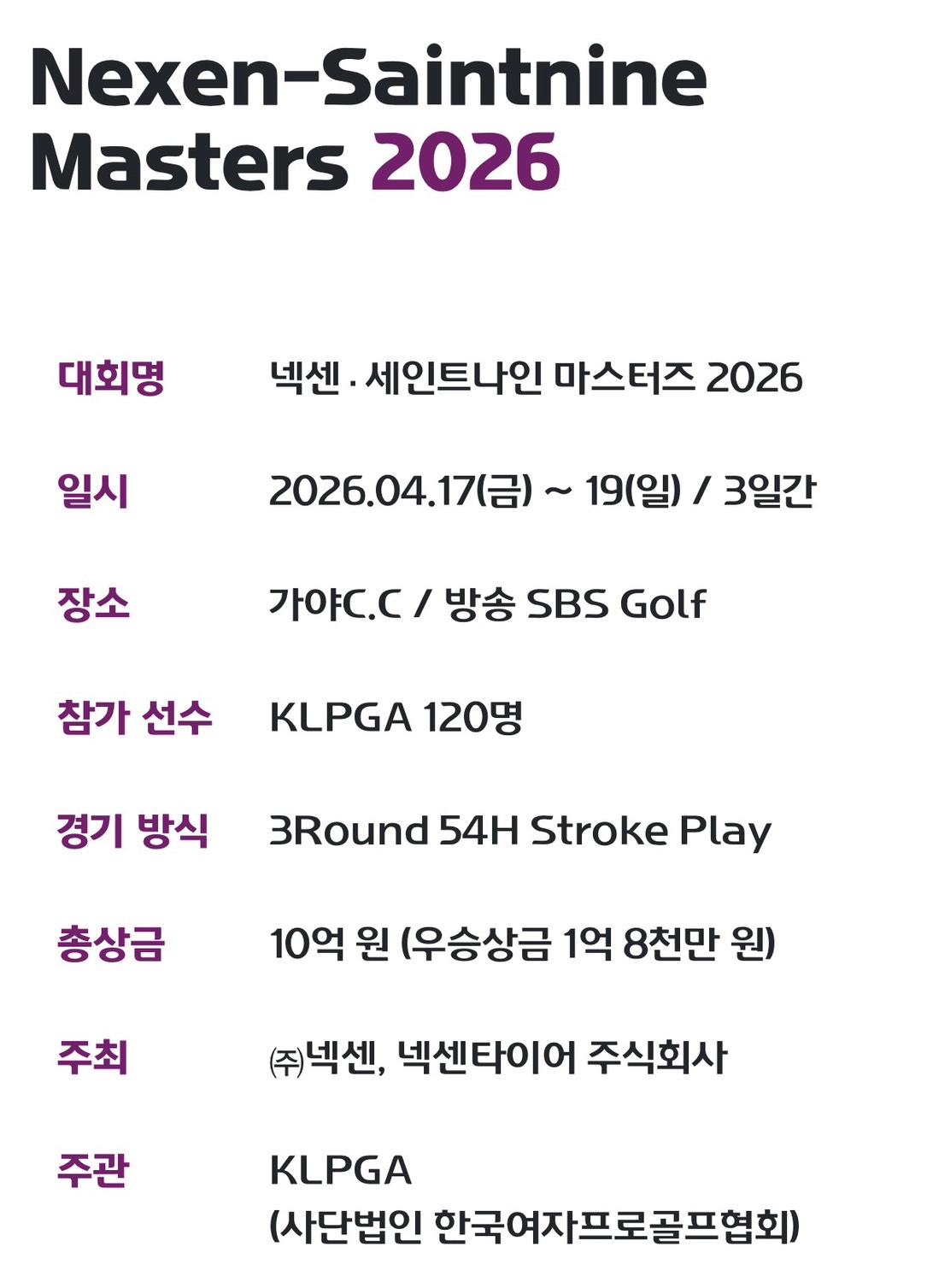 ❖ 넥센 · 세인트나인 마스터즈 2026 소개