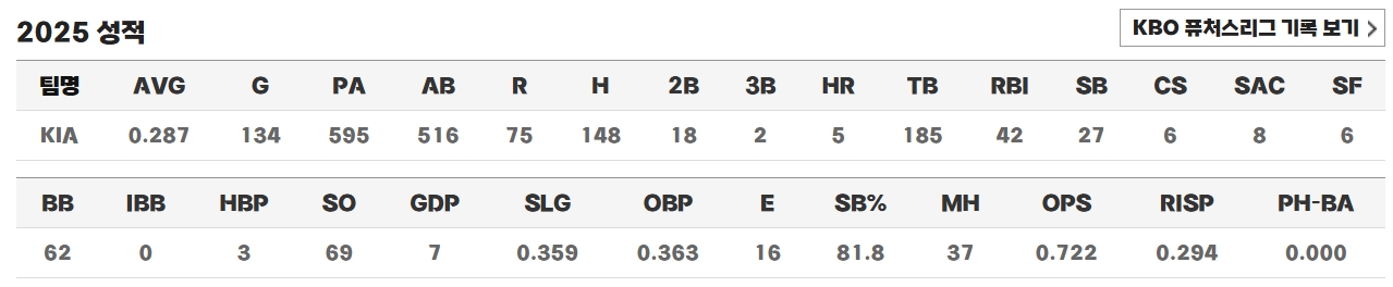 2025: 도루 27개 / 8위