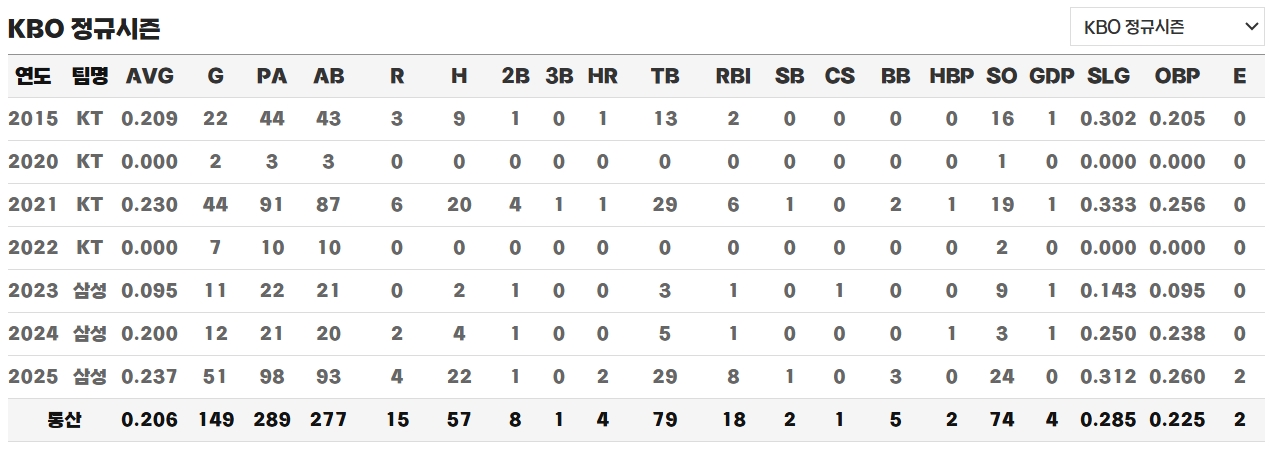 비록 주전 자리를 확보하지는 못했지만, 김태훈 선수는 삼성의 백업 외야 자원으로서 의미 있는 한 해를 보냈습니다. 예전보다 부상 없이 꾸준히 출장하며 팀 내 입지를 다졌고, 시즌 후 연봉 인상과 함께 다음 시즌에도 백업으로 더 많은 기회를 받을 것으로 예상됩니다.