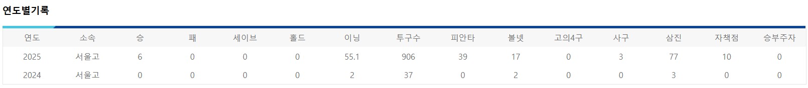 하지만 박지성 선수의 진짜 가치는 단순한 스탯에만 있는 것이 아닙니다. 그는 철저한 자기관리와 성실한 훈련 자세로도 높은 평가를 받고 있습니다. 실제로 박지성 선수는 이번 시즌 주말리그와 이마트배 대회를 통틀어 팀 내 최다인 29⅔이닝을 책임졌습니다. 이는 단순히 몸이 좋다고 해서 가능한 일이 아닙니다. 체력은 물론이고, 한 시즌을 꾸준히 이끌 수 있는 자기관리와 성실함이 뒷받침되어야 가능한 일이죠. 서울고 코칭스태프도 그에 대해 “성실하고 욕심이 많은 선수이며, 팀이 가장 믿고 맡길 수 있는 이닝이터”라고 칭찬을 아끼지 않았습니다.