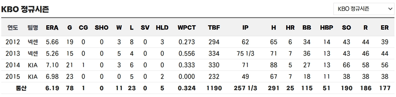 ◇ 통산 KBO 성적 / 기록