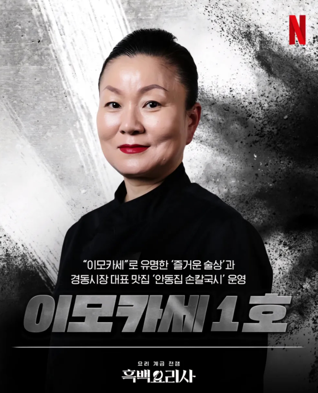 이모카세 김미령은 넷플릭스 요리 경연 프로그램 흑백요리사에서 '이모카세 1호'로 주목받은 대한민국의 한식 요리사입니다. 어린 시절 가족의 어려운 형편 속에서 요리에 대한 열정을 키워갔고, 국수 장사를 도우며 요리의 길을 걷기 시작했습니다. 흑백요리사에서는 빠르고 정확한 손놀림으로 팀을 이끄는 핵심 멤버로 활약하며 큰 인기를 끌었습니다.