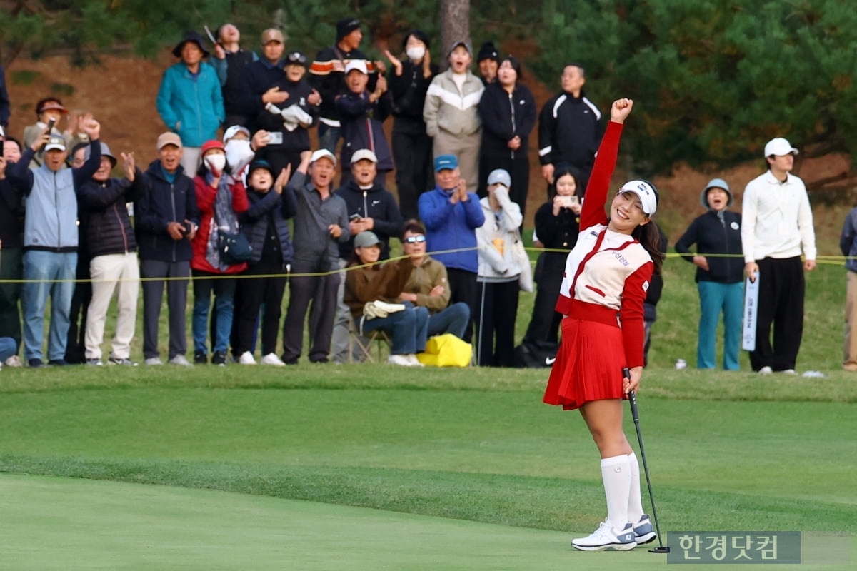 19일 열린 최종 4라운드에서 이율린은 전날 기록한 9언더파의 기세를 이어가며 버디 5개, 보기 4개로 1타를 줄였습니다. 경기 후반 17번홀과 18번홀에서 연속 버디를 잡아내며 12언더파 276타로 경기를 마쳤습니다. 그녀의 스코어는 이미 경기를 마친 박지영과 동타를 이루었고, 두 선수는 결국 연장전에 돌입했습니다. 연장은 18번홀에서 계속 진행되었으며, 1차부터 4차 연장전까지 두 선수 모두 파를 기록해 승부가 나지 않았습니다. 긴장감이 극에 달한 5차 연장전, 이율린은 약 8.1미터 거리의 버디 퍼트를 성공시키며 승리를 확정했습니다. 박지영이 파에 그치자, 이율린은 환하게 웃으며 두 팔을 들어 올렸습니다. 이로써 그녀는 자신의 프로 데뷔 이후 첫 우승을 이뤄내며 상금 2억 1600만 원을 손에 넣었습니다.