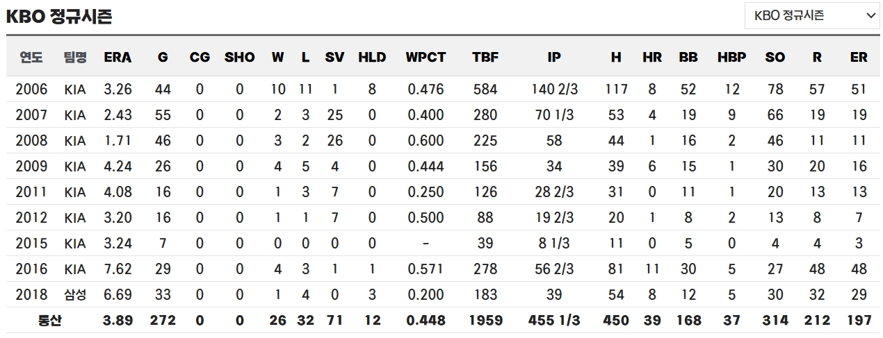 ◇ 통산 KBO 성적 / 기록