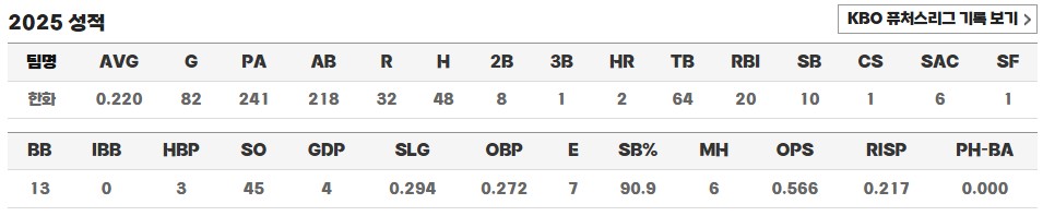 하지만 앞으로의 과제도 분명합니다. 아직 계약 기간은 3년 이상 남아 있고, 한화 이글스 팬들은 물론 구단 역시 더 나은 성과를 기대하고 있습니다. 수비와 주루에서의 안정감은 인정받고 있지만, 이제는 타격에서도 확실한 개선을 보여줘야 할 시점입니다. 단순히 출전 기회를 보장받는 선수가 아닌, FA로서 가치를 증명하는 주전 선수로 자리매김하려면, 공격 지표의 반등은 필수적일 것입니다.