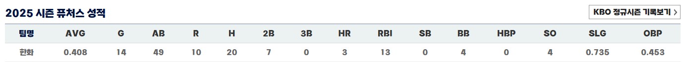 ◇ 2025년 KBO 경기 성적 / 기록