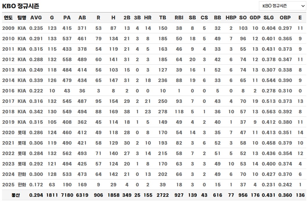 그런 성장 과정을 거쳐, 2009년 KIA 타이거즈의 2차 1순위 지명을 받아 프로에 입단하게 됩니다. 입단 첫 해부터 주전 2루수 자리를 꿰차며 눈에 띄는 활약을 펼쳤고, 그 해 올스타전에서는 역대 최연소 홈런을 기록하며 MVP까지 차지하는 기염을 토했습니다. 한국시리즈에서도 최연소 홈런 기록을 세우며 KIA의 프랜차이즈 스타로 빠르게 자리 잡았고, 약 10년 가까운 시간 동안 팀의 중심 내야수로서 굳건한 존재감을 드러냈습니다.
