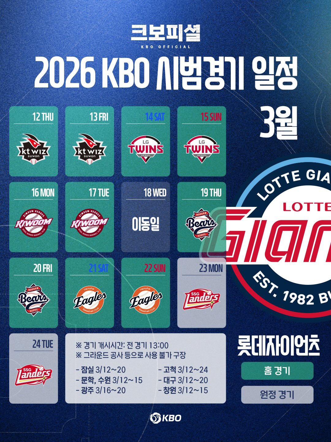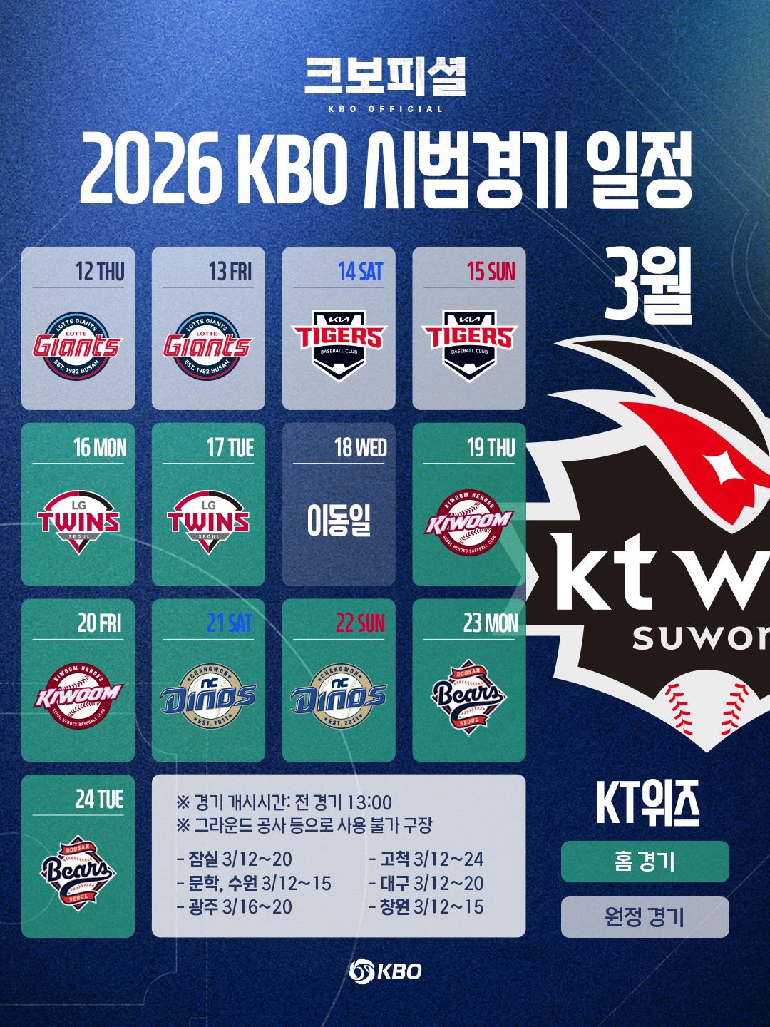 ❖ 2026년 KBO 프로야구 시범경기 일정