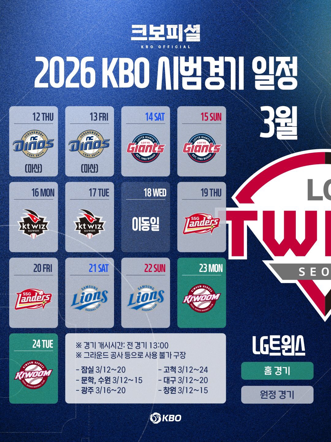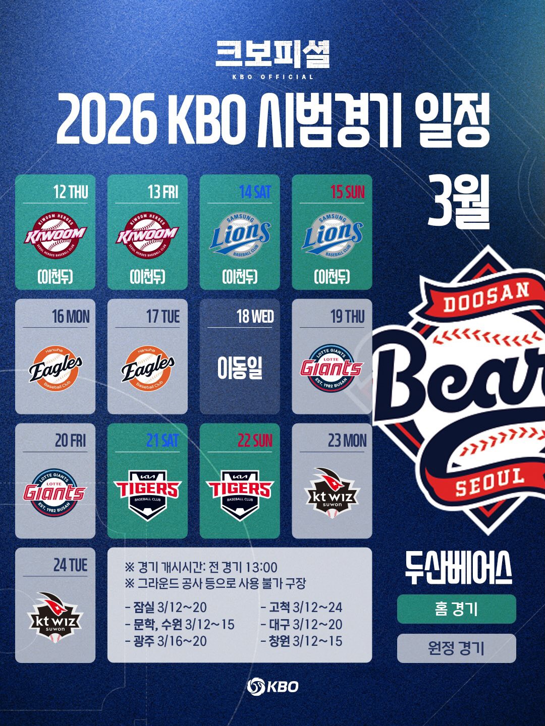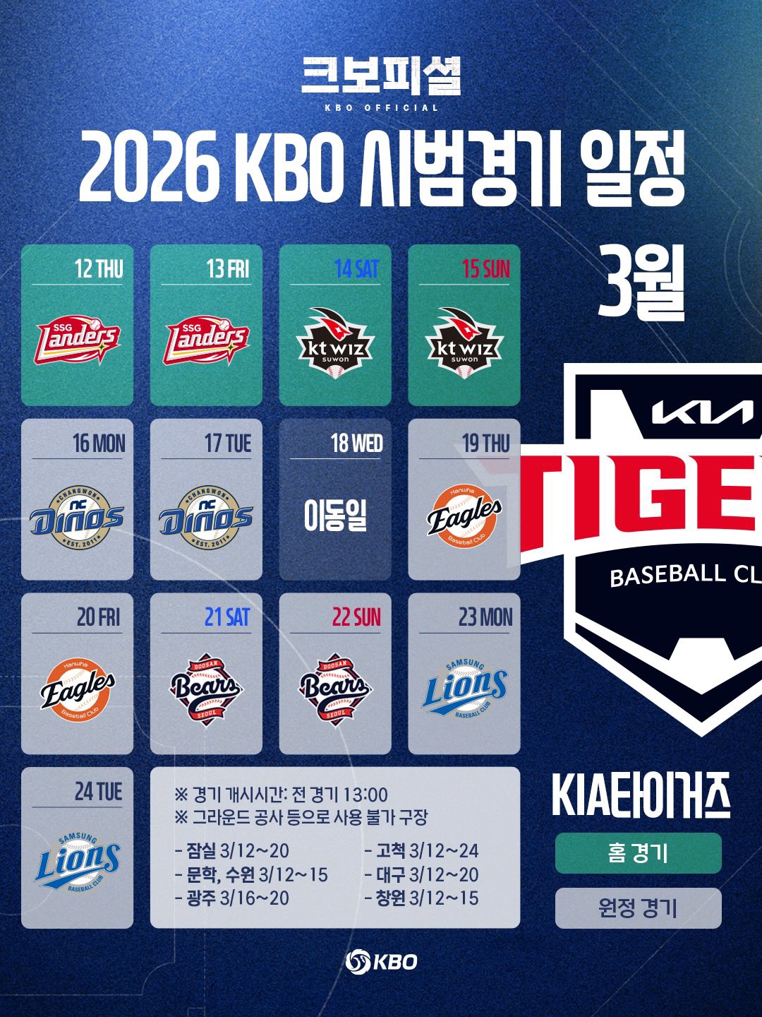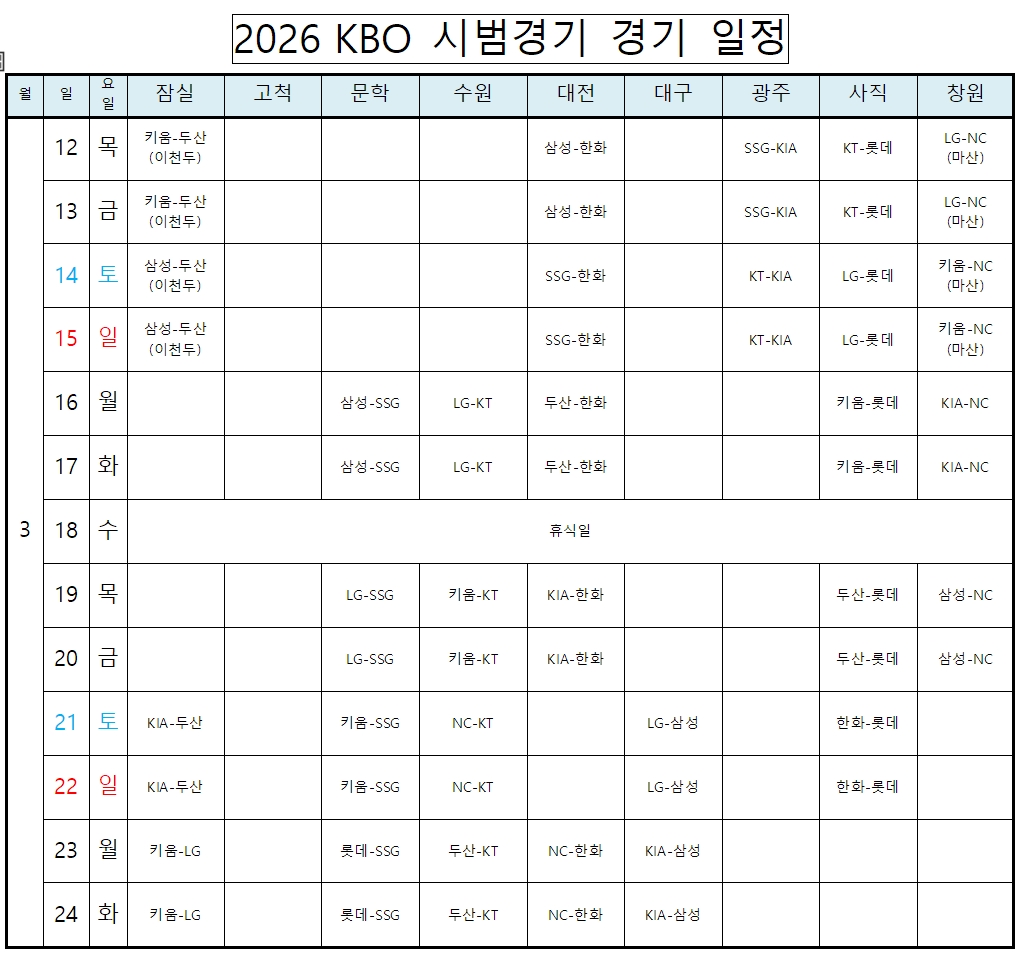 ❖ 2026년 KBO 프로야구 시범경기 일정