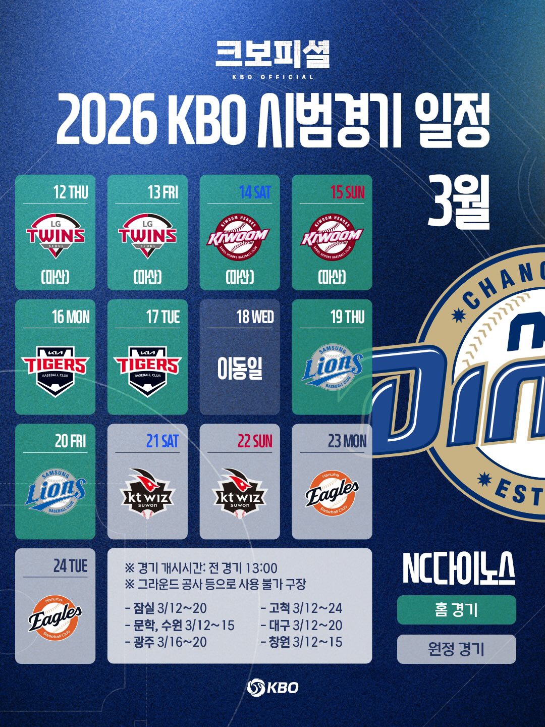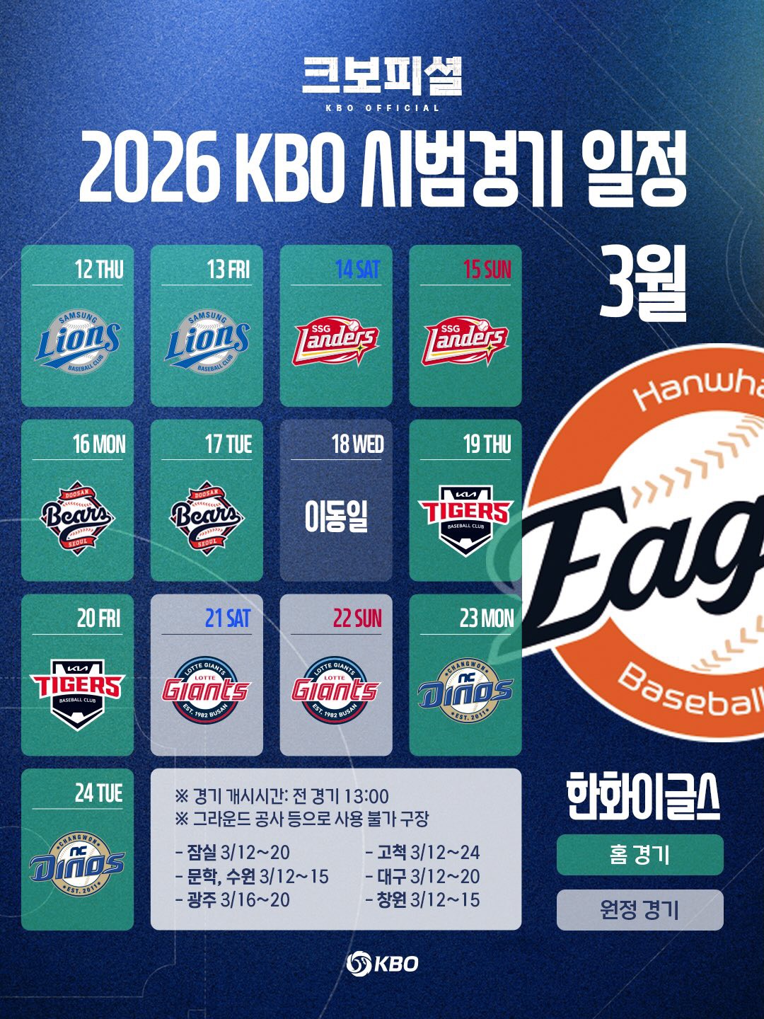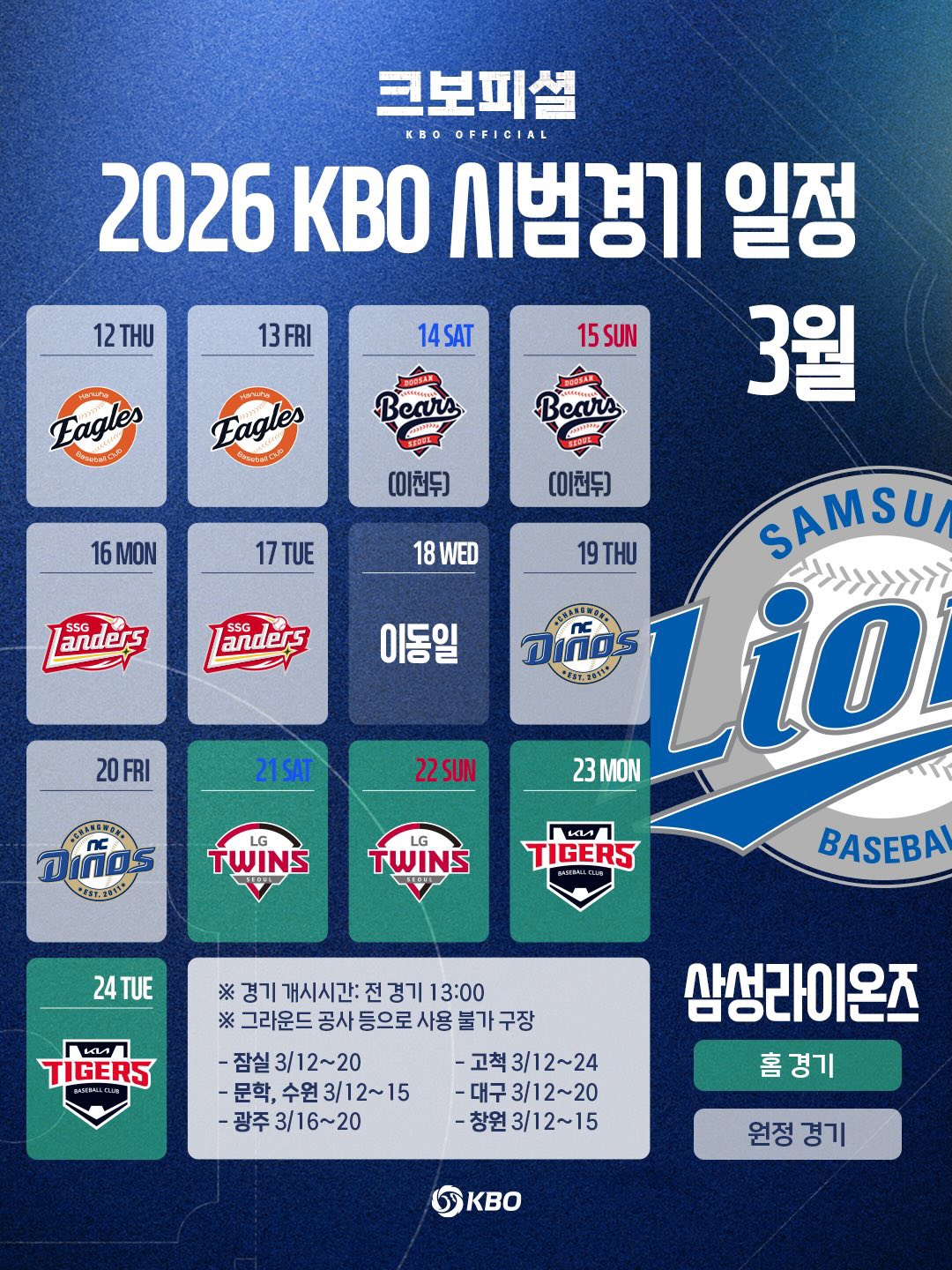 ❖ 2026년 KBO 프로야구 시범경기 일정