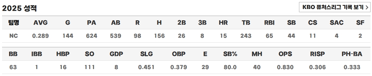 2025: 도루 44개 / 2위