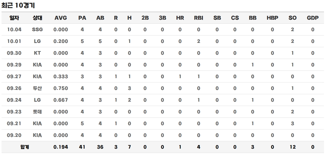 ◇ 최근 KBO 경기 성적 / 기록