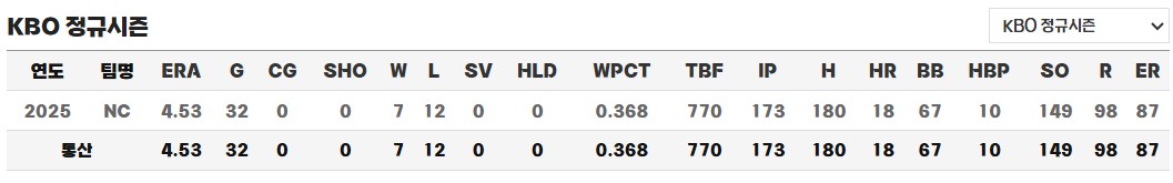 2025년 이닝 173 / 6위