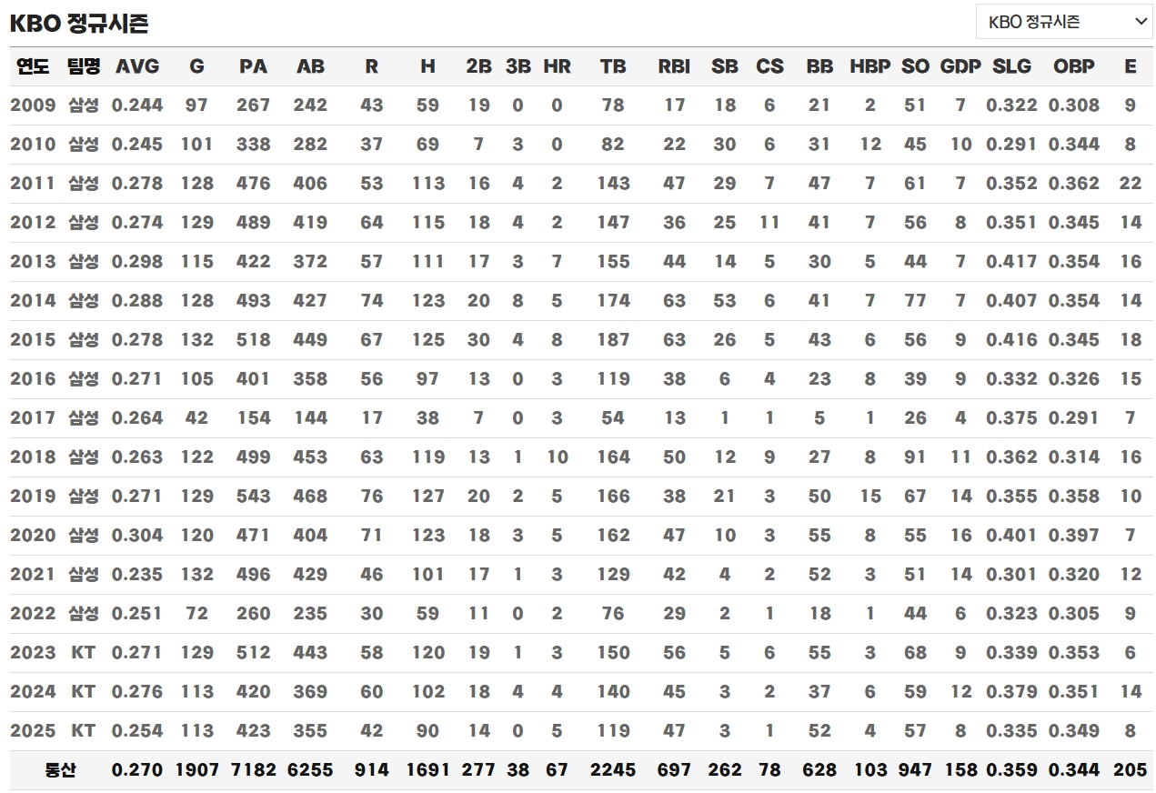 그러나 그럼에도 불구하고 김상수 선수는 꾸준함과 근성으로 팀 내에서 중요한 축을 담당했습니다. 삼성에서 기록한 1552경기 출장, 1379안타, 251도루라는 기록은 결코 가볍게 볼 수 없는 성과로, 장기적으로 팀에 크게 기여한 선수임을 보여주는 수치입니다. 그의 커리어는 단순히 화려함보다는 성실함과 지속성이 더 돋보인다고 전해집니다.
