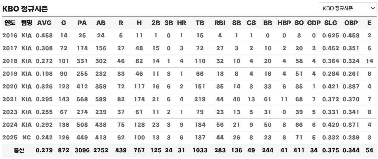 그러나 시즌이 후반으로 갈수록 다시 기복이 나타났다고 하며, 9월에는 연속 무안타와 낮은 OPS로 인해 힘겨운 타격 페이스를 보였다고 합니다. 그럼에도 불구하고 당시 NC 감독인 이호준 감독은 그를 꾸준히 기용하며 팀 내에서의 역할을 유지하도록 했다고 합니다. 주루나 수비에서의 장점이 확실했고, 경기 흐름을 바꾸는 역할을 기대할 수 있었기 때문이라고 알려져 있습니다.