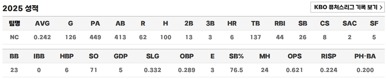 2025: 도루 26개 / 9위